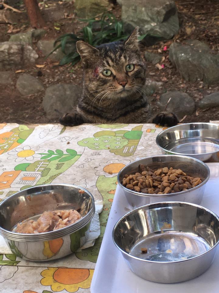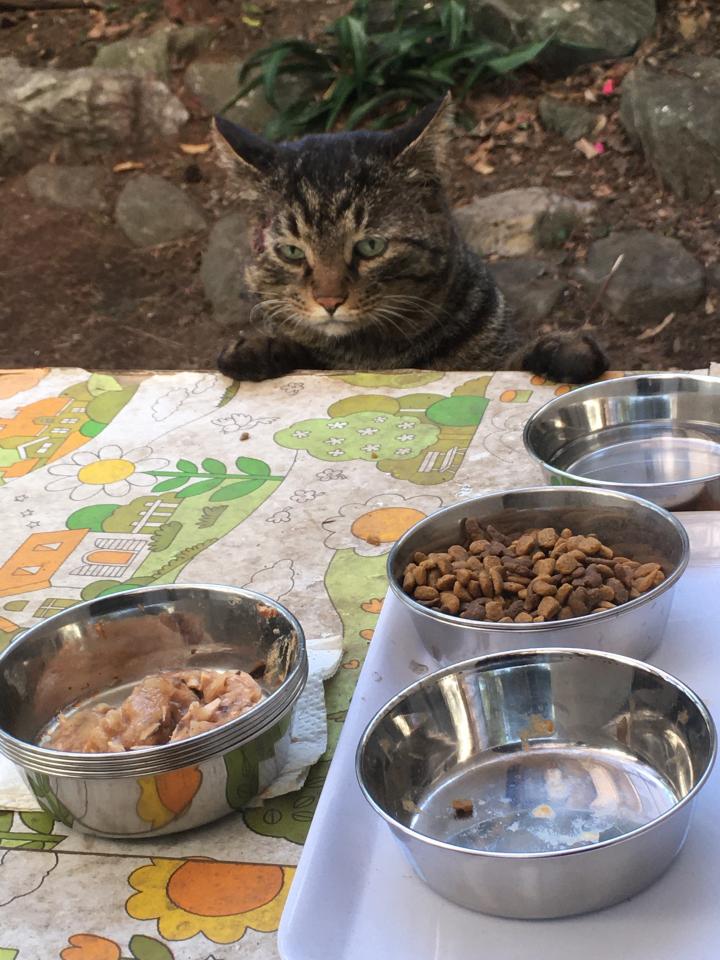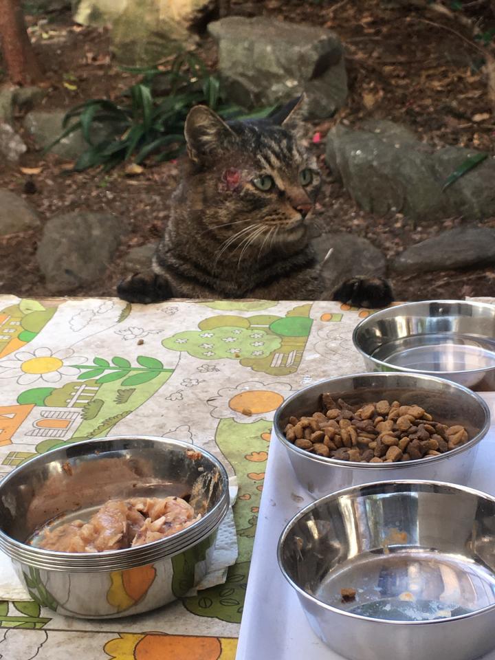 周りを警戒してか、缶詰半分残して帰っちゃった😭