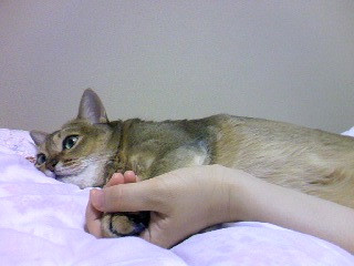 ダンナは先に東京へ戻り、妹とその子供(生後10ヶ月)と、りょくちゃん(アビシニアン10歳 熟女)が居ました。