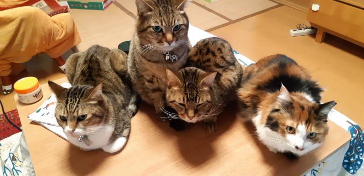 お利口ちゃんたち(この時ポンちゃんはこたつの中です)