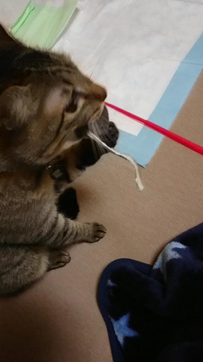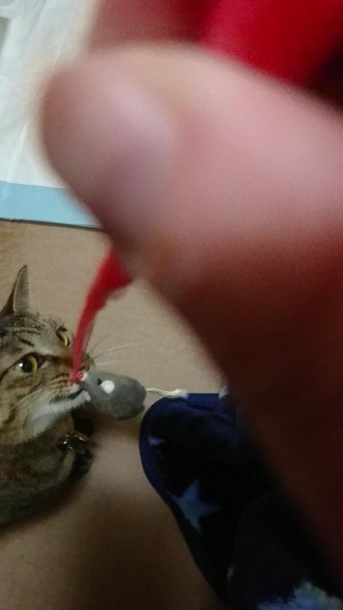 チャッピーお姉さんが、遊んでアピール👊✨にゃ➰。🐀のオモチャで、遊ぶ元気が少し復活してようですね😉😺良かったにゃ➰😃😻