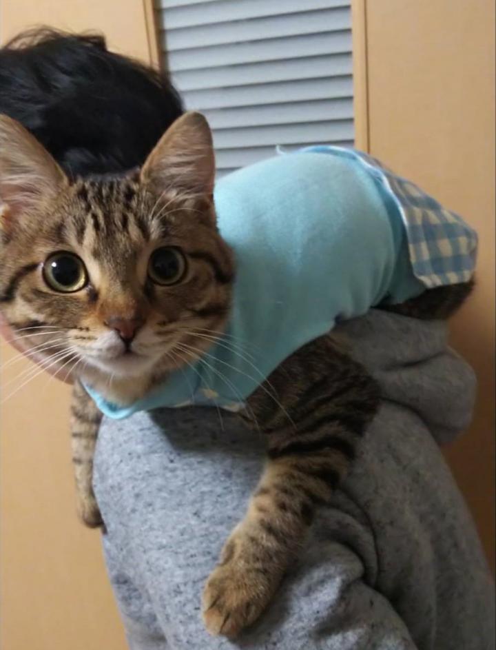 大好きな肩に乗って甘えておいでです。