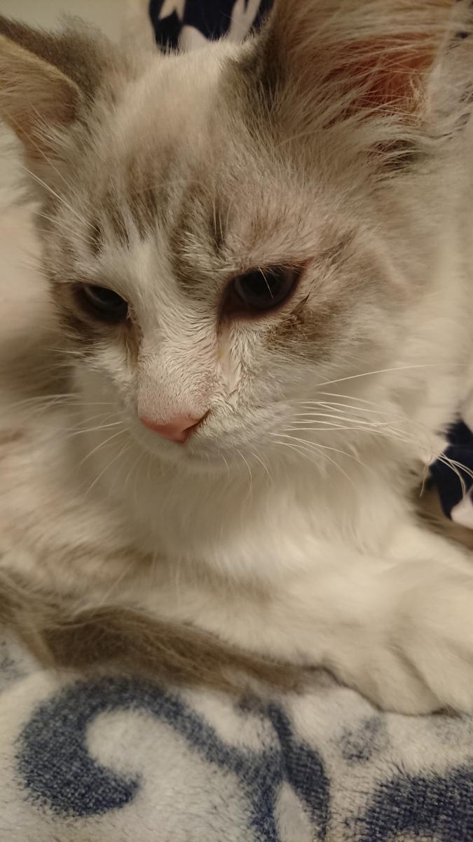 目薬が入った瞬間は反射的に顔をそむけるけど、さすのもそんなに嫌がらないし薬のまざったご飯も残さず食べてほんまにいい子。