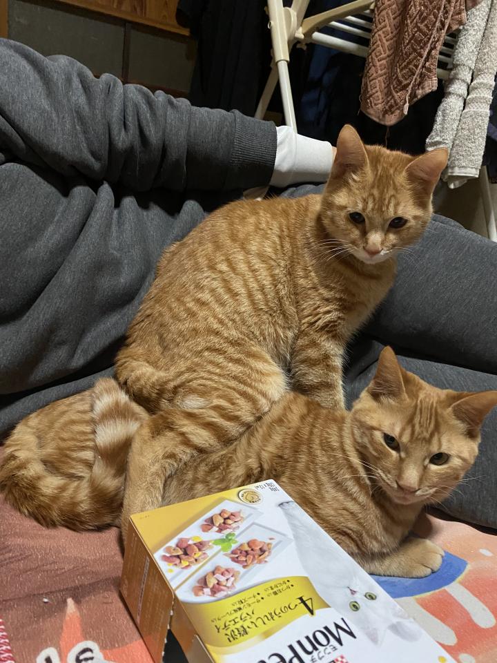 旦那が猫があまり好きではなくずっと【猫は臭い!イタズラもするから嫌い!⠀】と言っていたので、里親に出すしかないか……と思っていたのですが、みやちゃんの世話をしているうちにいつの間にかみやちゃんの下僕になってました。笑