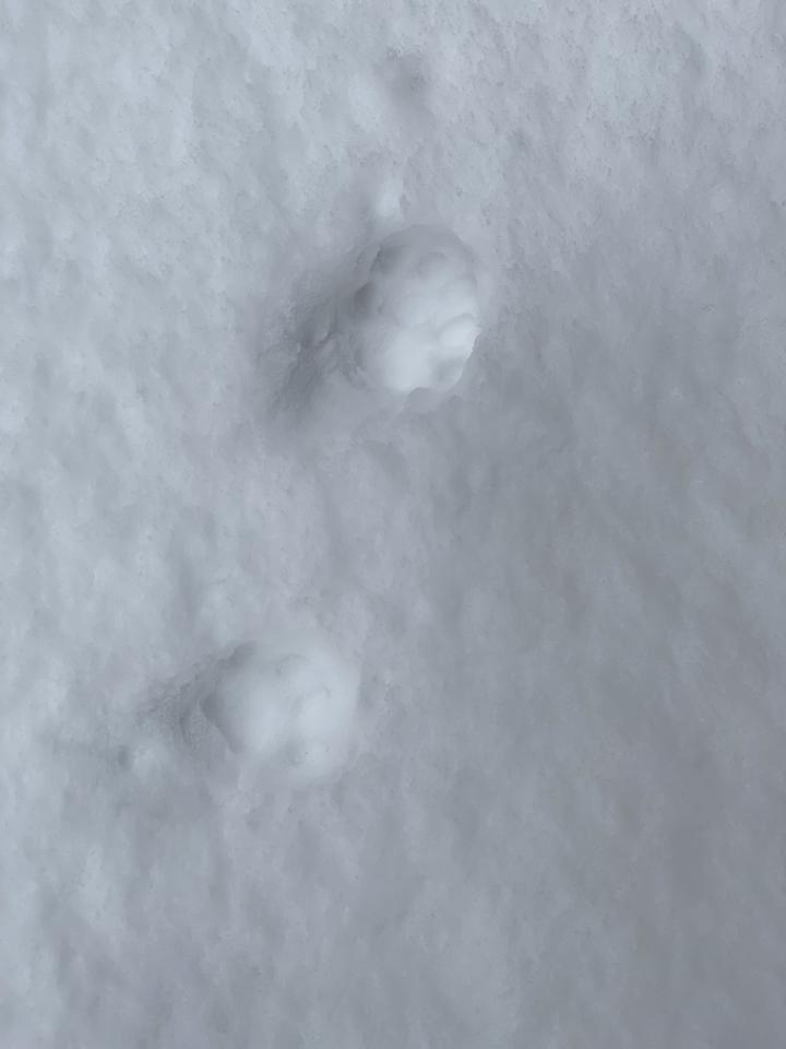 雪の上の肉球スタンプw