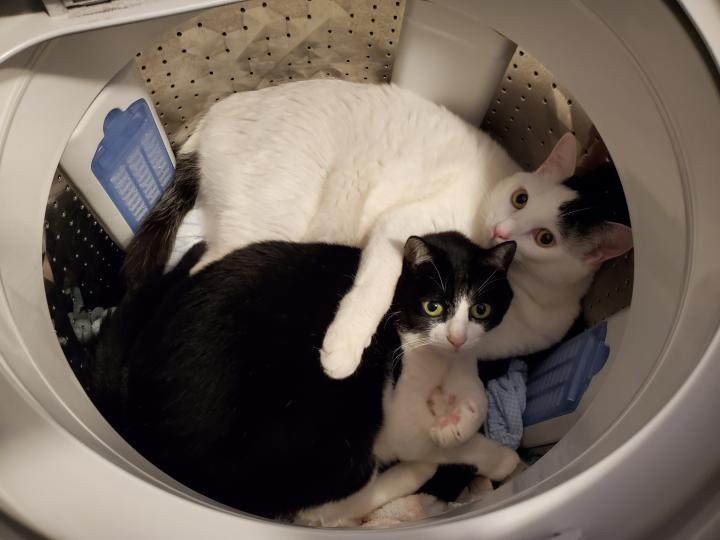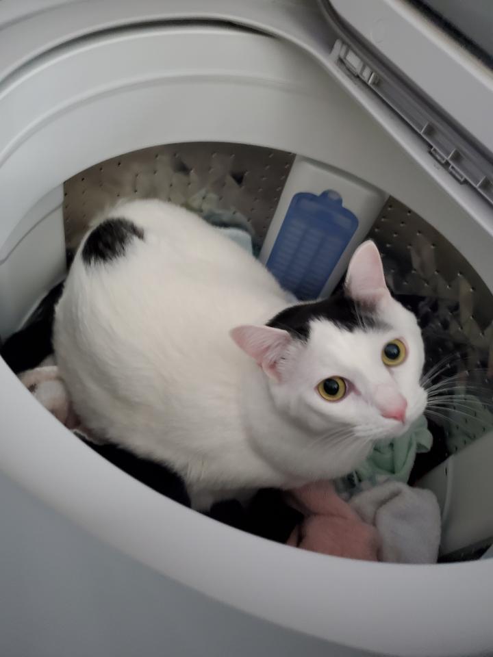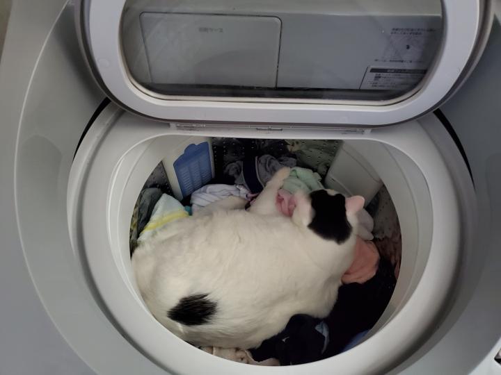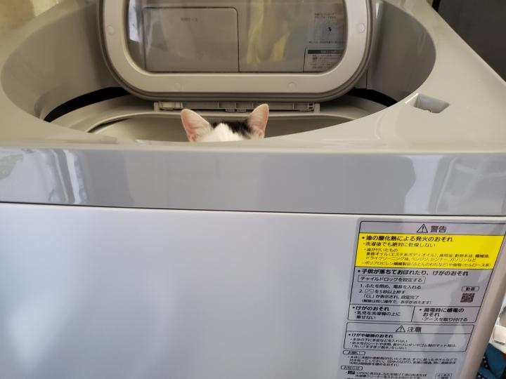他の家事を済ませ洗濯機に戻ってくると、何やらこちらの様子を伺う耳がピコんピコんと😼