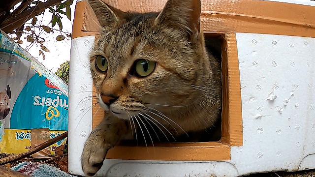 【野良猫】捨てられ震えてボロボロでしたがご飯をいっぱい食べました 捕獲保護にトライしてます