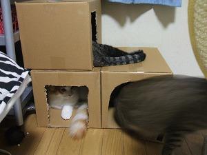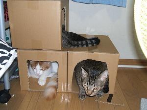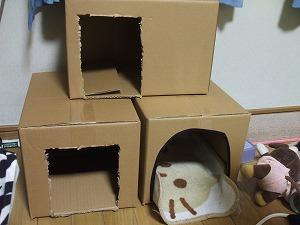 いちよ3にゃんいるので3っ作ったのですが、彼氏が2つ作り、私が1つ(右下のやつ)を作ったのですが私のダンボール人気なしっ!!笑