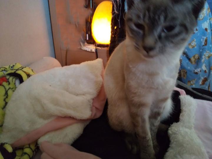 猫ベッドには腕枕が必須なので、腕枕がないと うなーーーと催促。