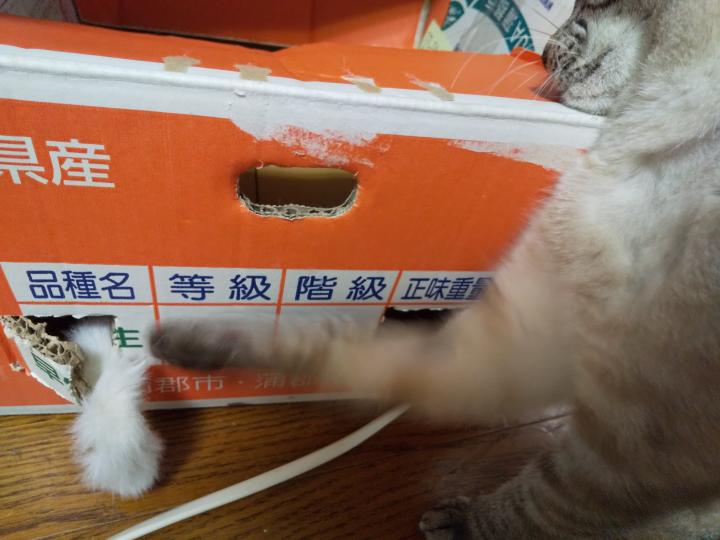 最近作った即席段ボールかくれんぼ箱の前でじーーーーっと見つめてみたり