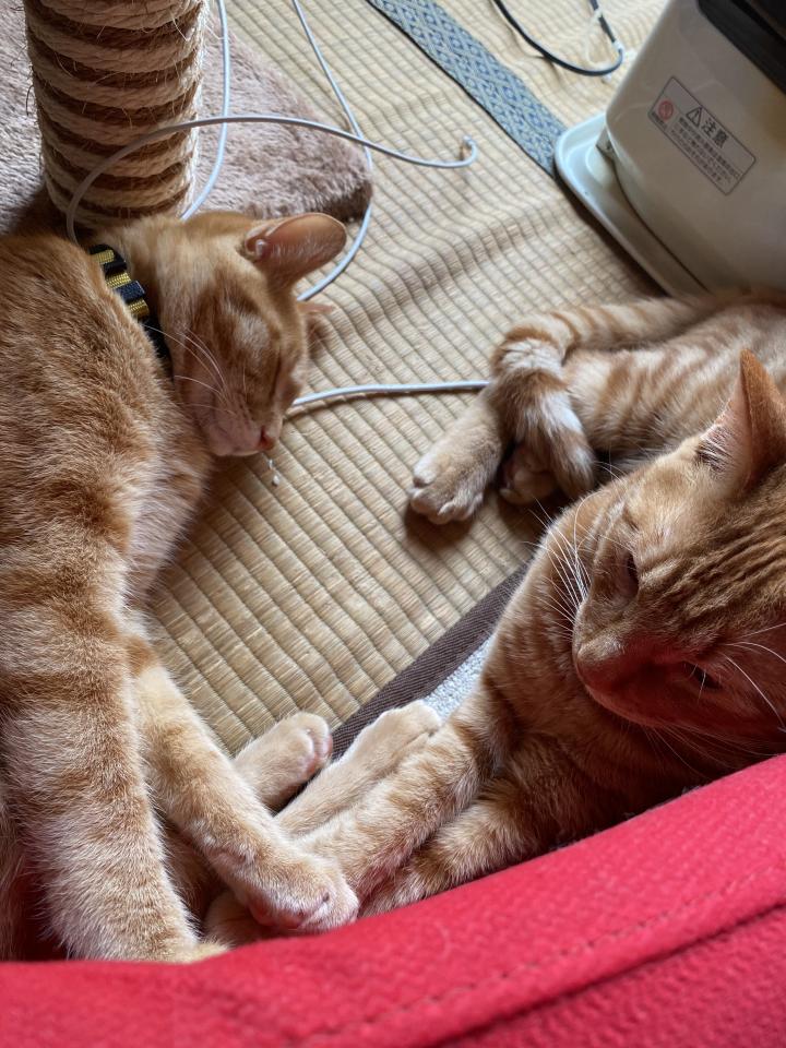にゃんずもヒーターの前に集まってゴロゴロ中です☺️