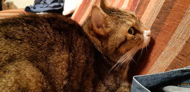 なぜソファの背もたれに向かって座ってるんだ⁉️