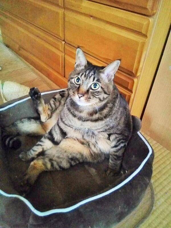 こんにちは、今朝重くて起きると二匹乗っかりの一匹もたれている