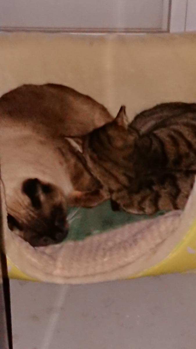 夜から朝にかけていつも3号と一緒に寝ている13号。
