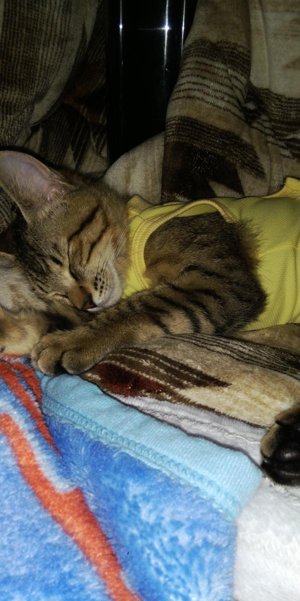 帰ってきた夕方は、なんか辛そうな顔してたまにか細い声で泣いてて震える姿を見るとかわいそうでした。