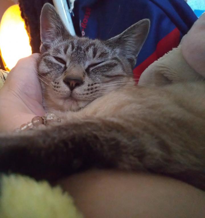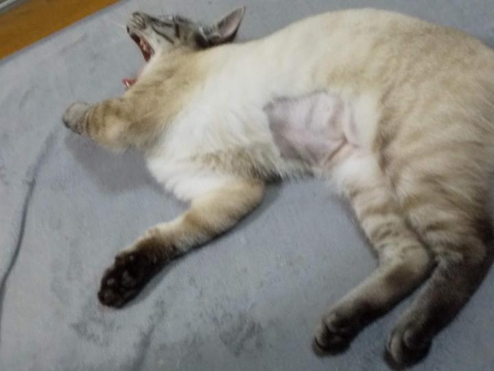 今朝も、トイレの砂を掻いた様子がないまま、すっきりした顔でベッドへきて