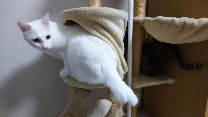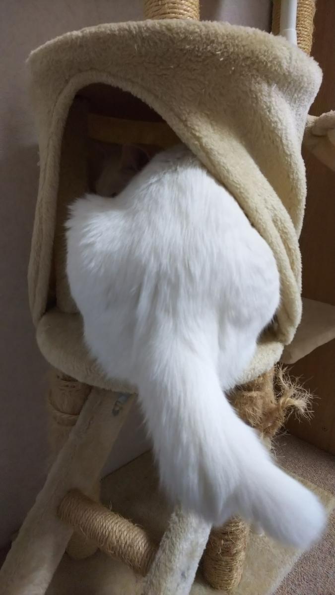 今朝、同じキャットタワーに入るちーちゃん。