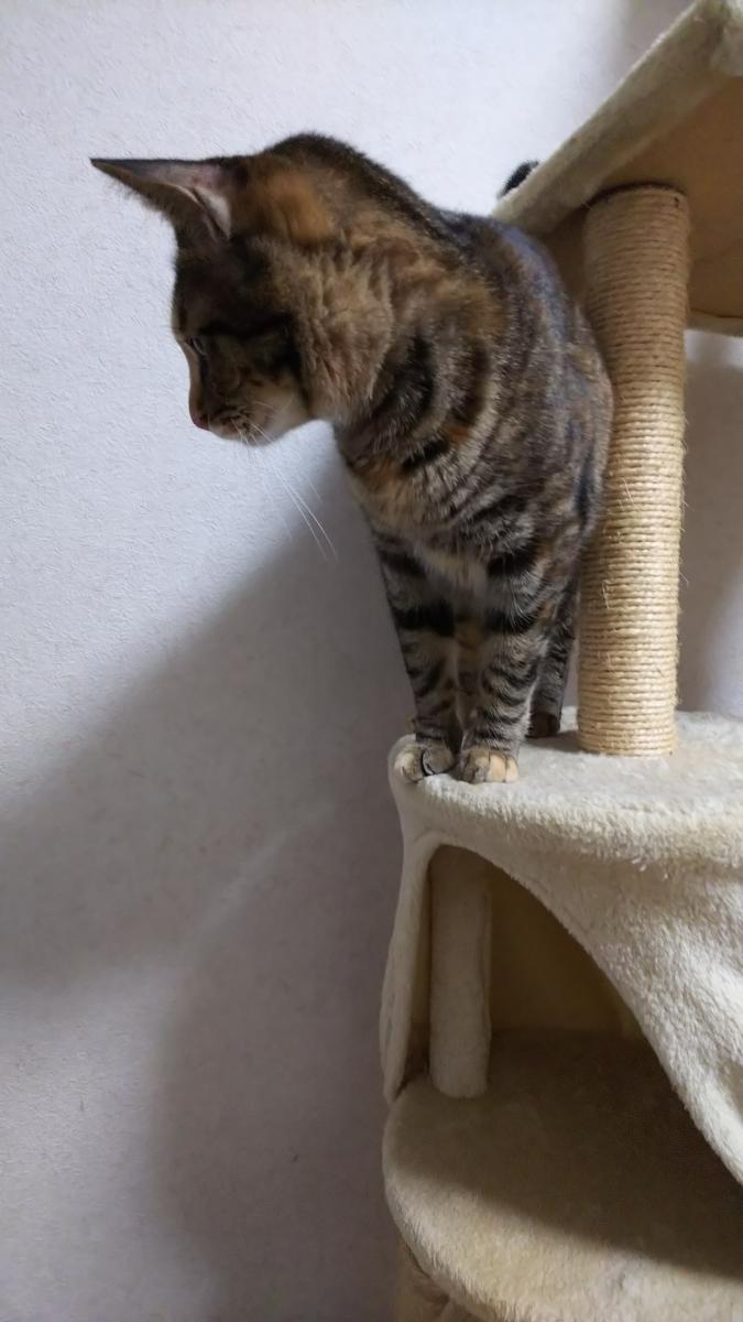 ちーちゃんがうちにきて間もない頃。初めてのキャットタワー。