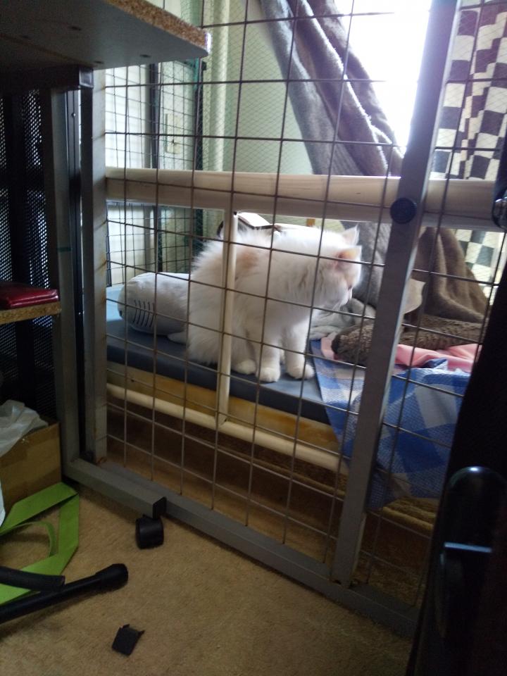 シャルルが起きだしたらまたケージに戻ってもらいます。