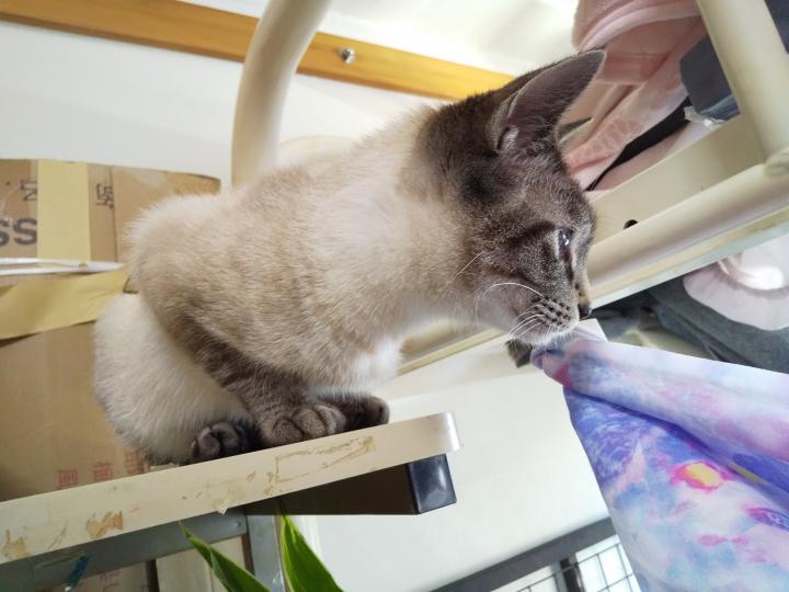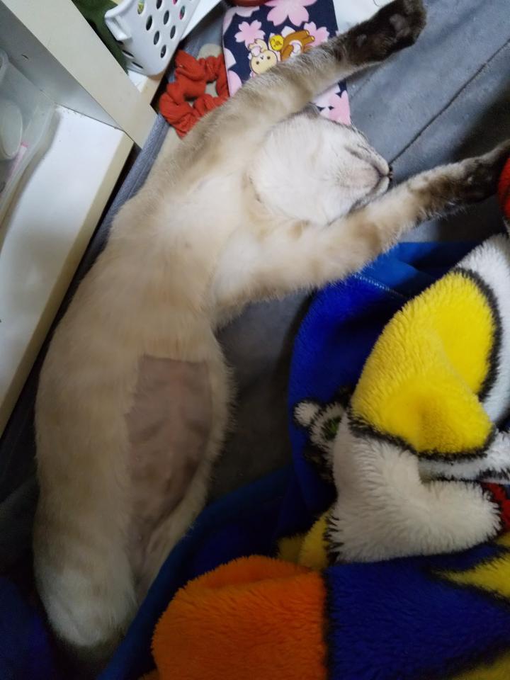 自分でマタタビつけた爪研ぎで落ち着こうとしたのか、その後いつもの定位置でおやすみなさい。