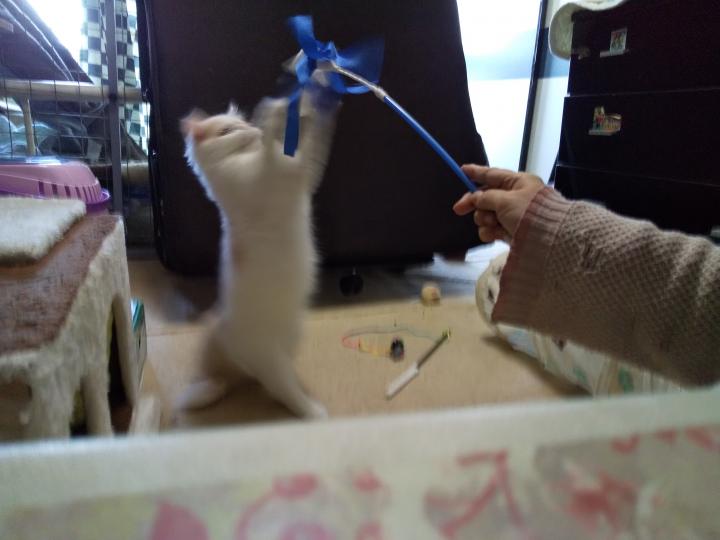 猫部屋のドアを締め切って今度はスイクンと猫じゃらしタイム。
