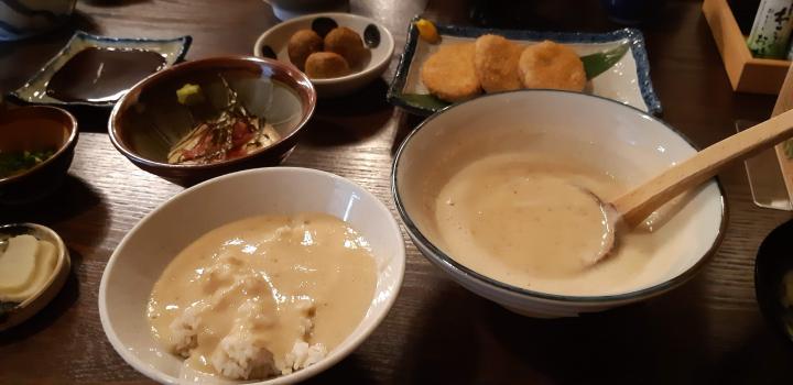 このとろろ汁がすりおろした自然薯に味噌汁(このお店は白味噌だそうで、確か鰹だしだったと思います)を入れて一体化させたのが、某テレビ番組で取り上げてたとろろ汁です。