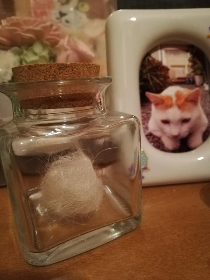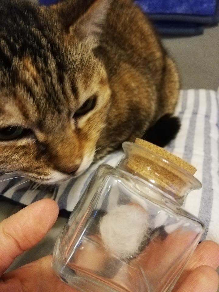 もんちの毛玉桃母さんに見せたよ