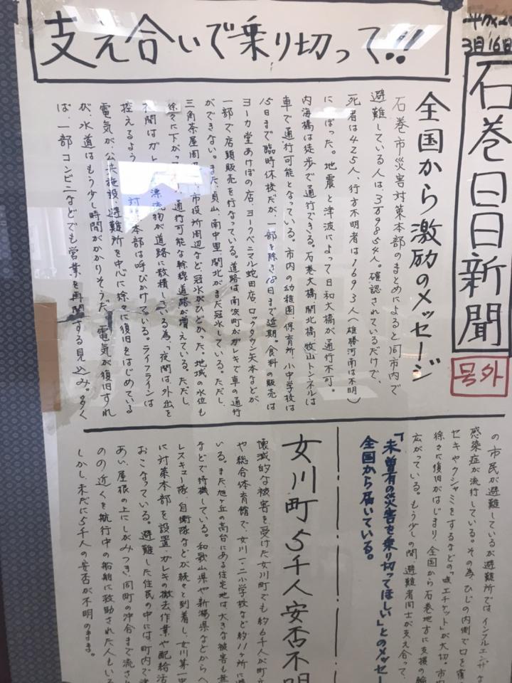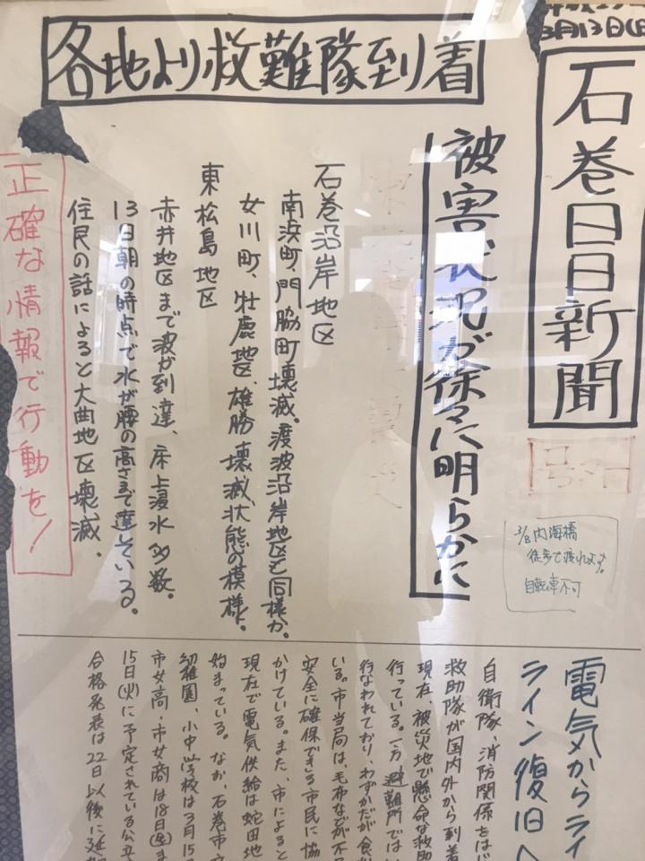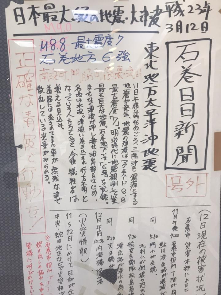 その後にお邪魔したのは、石巻絆の駅。ここでは石巻日日新聞の壁新聞を見学させて頂きました。