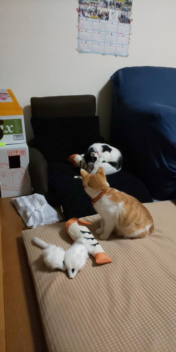 鼻が詰まってるナッツくんは反応薄…齧り付いてるキッツくんを不思議そうに見ています(笑)