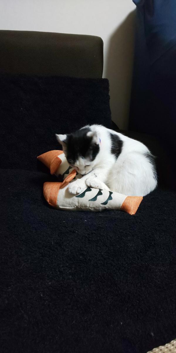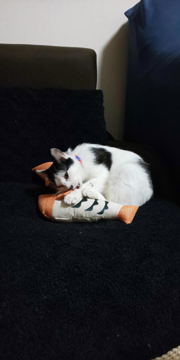 マタタビスプレーをワンプッシュして渡してみたらキッツくんは食い付きが良い❗️