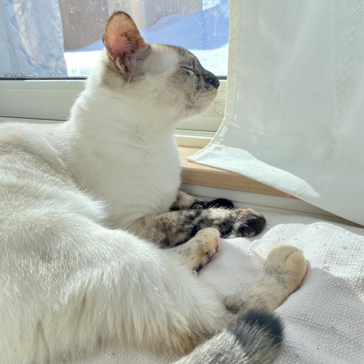 遊びが終わると今日は天気が良いので窓際で休む美鈴🐱