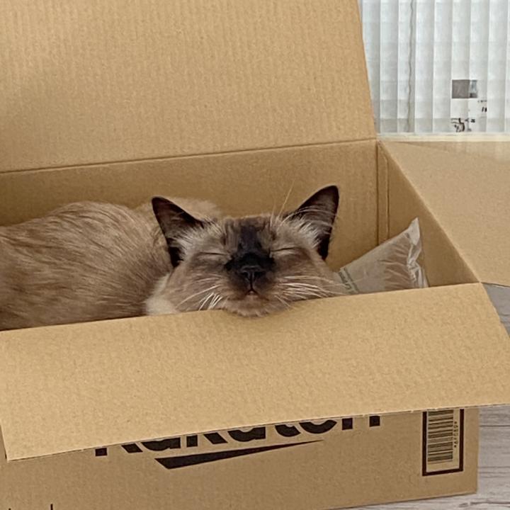 空いたダンボール📦に入り込みいつの間にか気持ち良さそうに寝てしまう雷牙😽