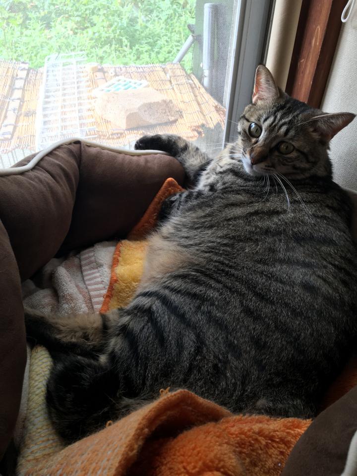 それを主人に伝えた所「ゲン、良い子だねー🍀辞めたんだね♪それも辞めなさい笑」と指差した先にはゲンのふくよかなお腹🤣
