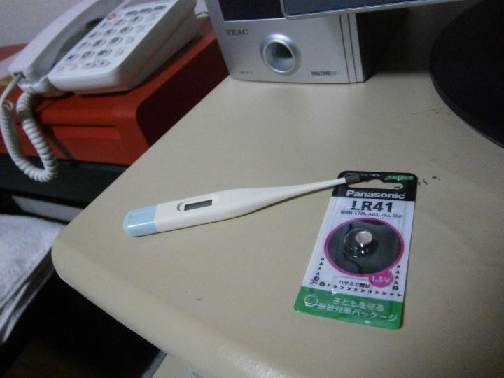 で、今週より我が職場でも朝の体温測定を実施せよとの通達があり、家の体温計を十何年ぶり(?)に出してみたら表示が点かず・・・電池交換するもダメ(>< ふと救急箱の中にもあったのを思い出し、電池交換したら無事作動しました。^^ こういうのって使ってなくても電池消耗するんですね~^^;