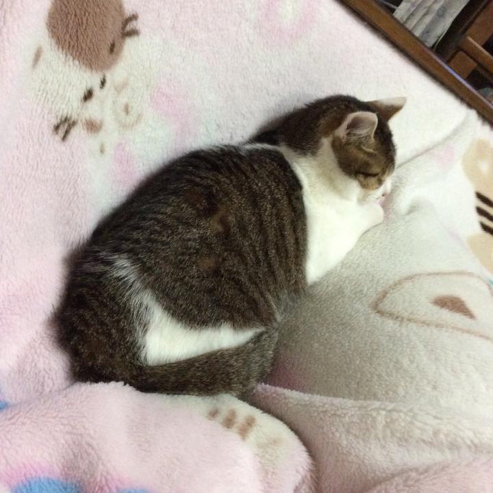 なでなでねんねされてゴロゴロ全開のネコ息子。