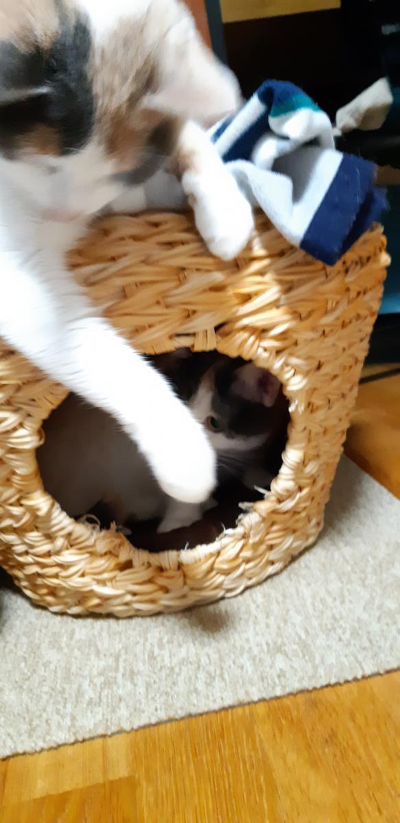 育児放棄された姉妹2匹を保護して 初めての猫飼い。 すくすくと育って一安心。 とても平和な毎日を送っていたのに… 野良猫乱入事件に合い、一時は仲良し姉妹の間にも大きな溝が… 野良猫を阻止して、...