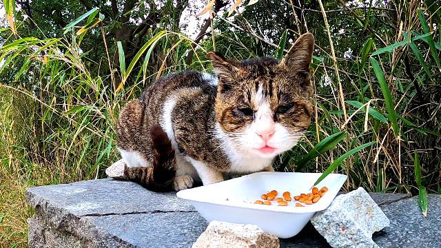 【野良猫】捨てられ震えてボロボロでしたがご飯をいっぱい食べました 捕獲保護にトライしてます