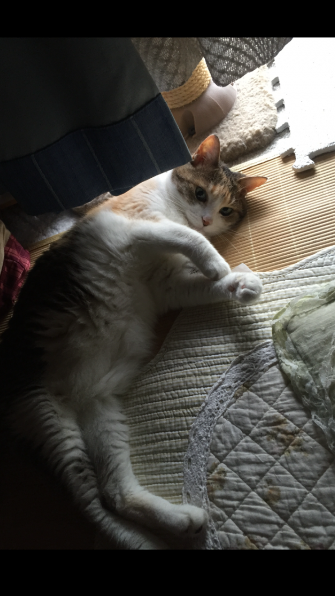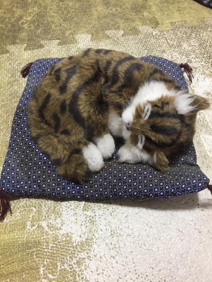 そして夜暗闇で見たらまおちんが寝てる‼️💦とギョッとするリアルなニャンコの置物‼️かわいい…ヨーシヨーシ‼️と撫でて寂しさを紛らわせております😭