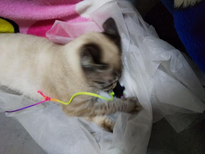 その後お母さん嫌われたと思うからとお兄ちゃんに青いはたき猫じゃらしでシャルルのご機嫌取ってもらいました。