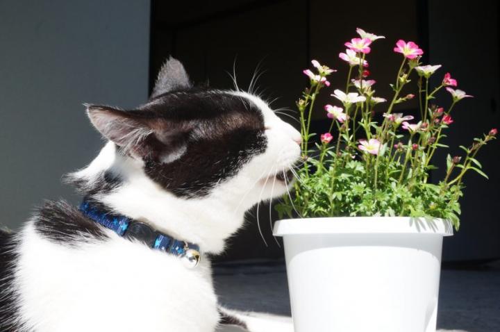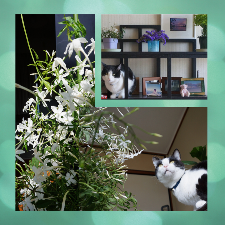 右上の写真、モモの上にある小さい鉢がジャスミン