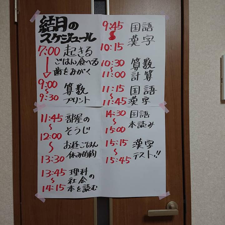 仕事は時短にしてもらい、午前中に息子が自習出来る様に夜に問題を作って、朝、子供に渡しときます。