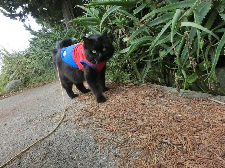 そして、ここにはキキくんのお気に入りの松の木があって、ほらもう上ってる。
