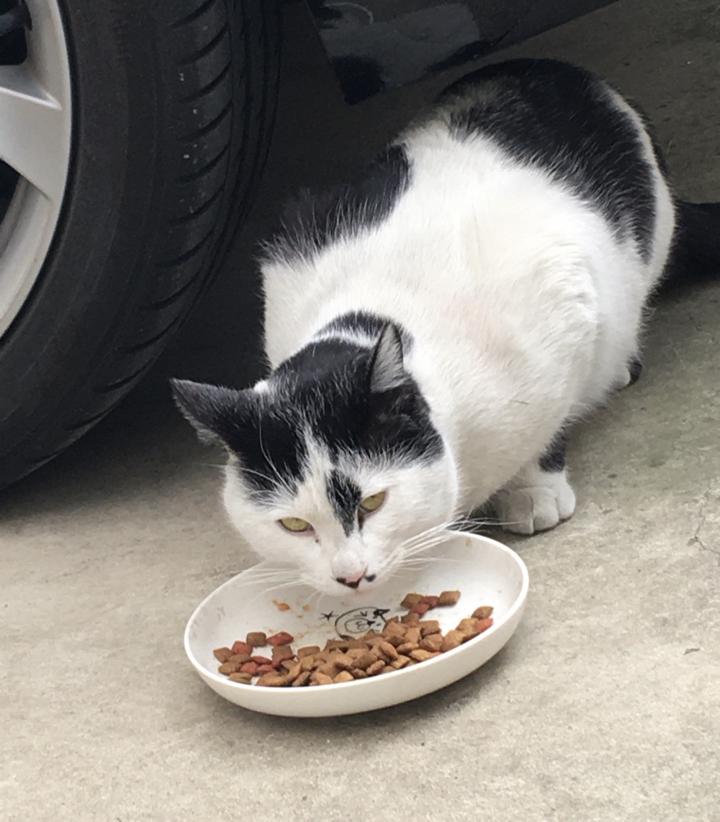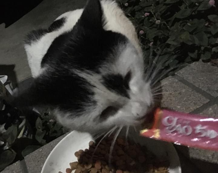昨日の夜やってきたので、触れない子だけどちゅーるを出してみました。