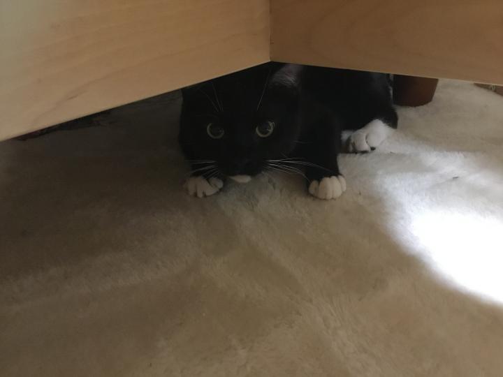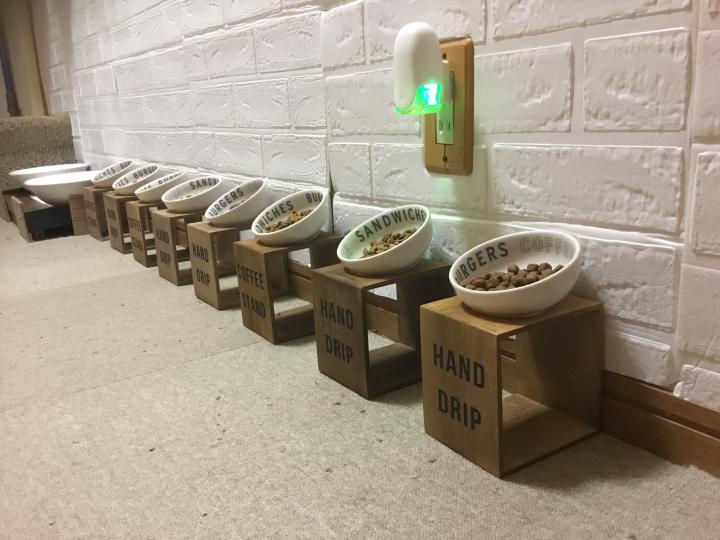 セバスチャンが来るまでは、、、台を作ってフード容器を