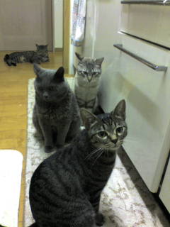 14歳のロシアンもどき巨猫フィ(♂)を筆頭に嫁の美猫カルネ、息子つばき、ぼたん。迷子のコギャル猫あやめも加わり大所帯・・・と思っていたら、あやめ(クロさん所の花のママ)がまた6プニー産んでまさに猫屋敷...