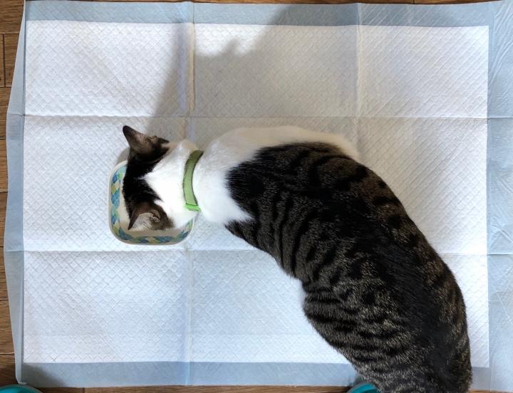同じペットシートの上でお皿も同じもので撮影してみました。