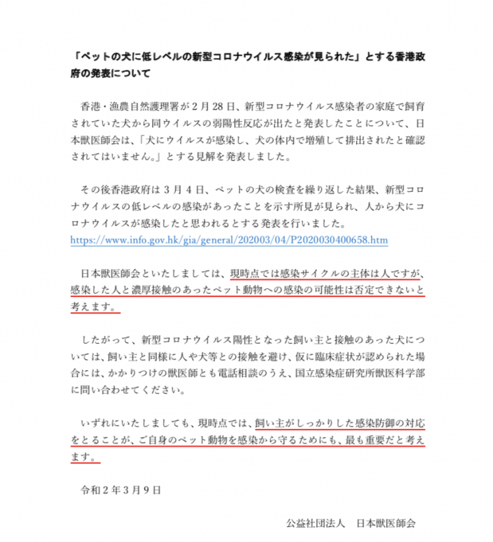 新型コロナウイルス感染症に関する情報(日本獣医師会)
