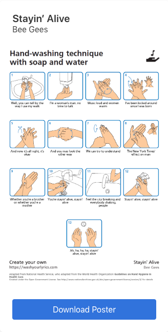 オリジナルの手洗いソングが作れるサイト…タイトルと歌手を挿入すれば、ポスターができる