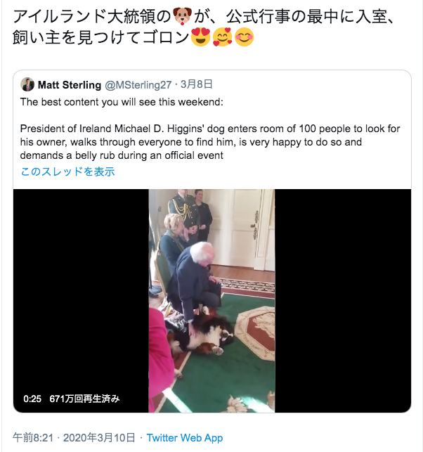 100人が集まる、アイルランド大統領の公式行事の最中の出来事→日本語は、私のなんちゃって訳のRT