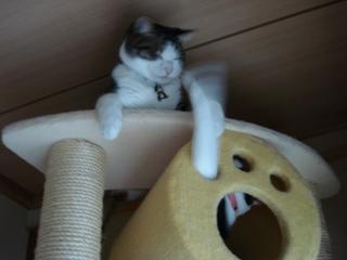 ネコタワーの上で、遊んでいます。