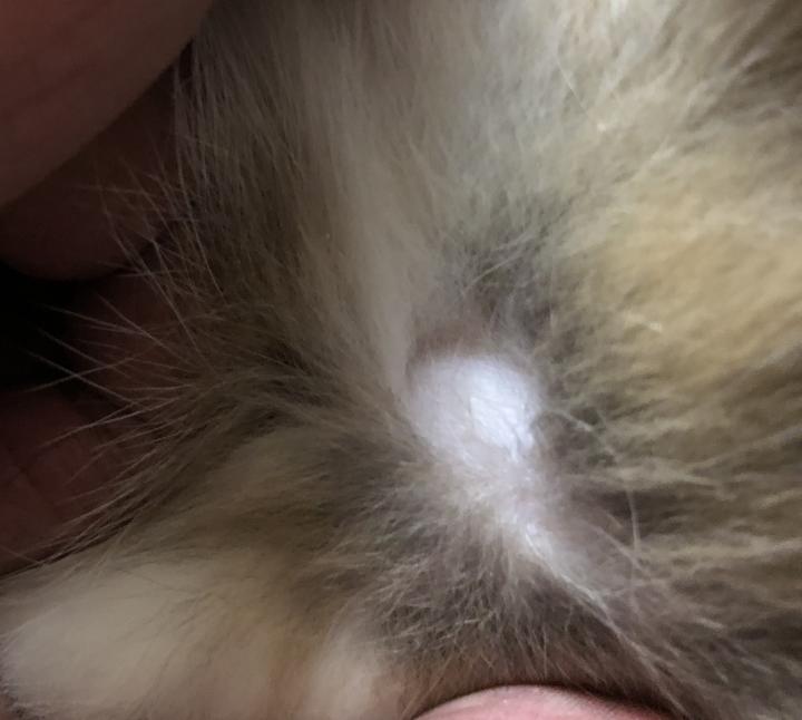 毛をかきわけて見えやすいようにしてみたんですが普段は全く目立たないんです。